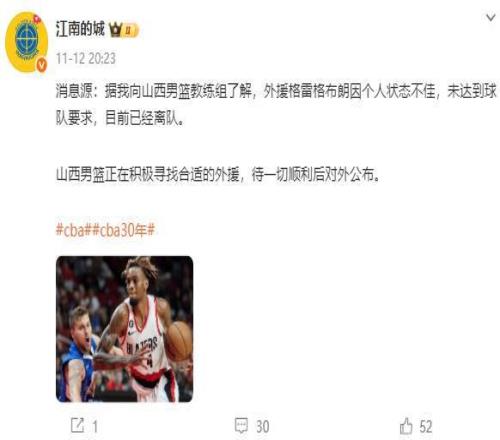上赛季的黑马山西男篮,新赛季还没开打,就已经裁掉了两名外援,格雷格-布朗和乔治-康迪特。具体原因是他们在山西男篮训练了一段时间,教练组发现他们状态并不好,所以选择裁掉。
