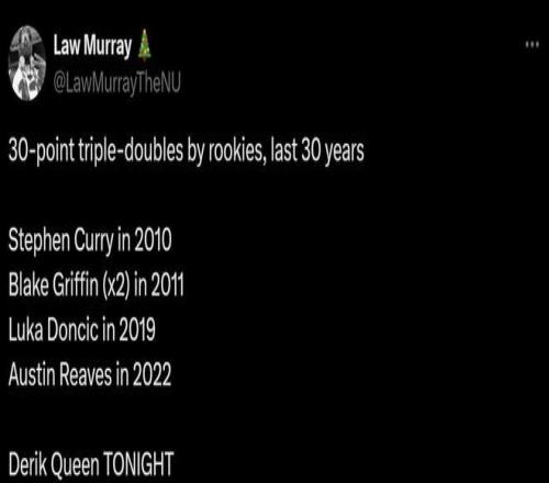 哪怕放开位置限制条件,奎因的表现依旧可圈可点,是NBA历史上第五位拿到30+三双的新秀。