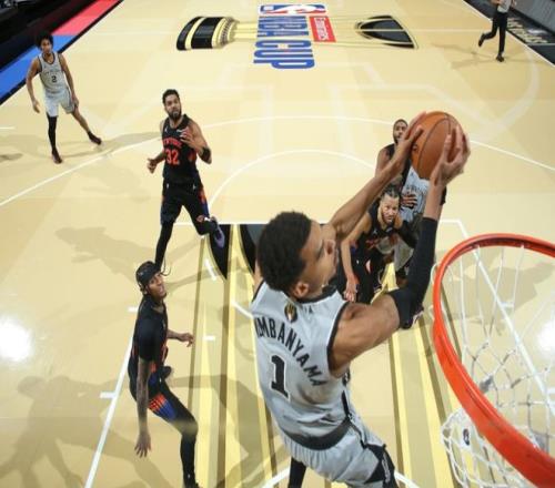 后半段布伦森和唐斯轮流单打,双方又回到同一起跑线,节末福克斯高难度漂移跳投,半场马刺61-59尼克斯,阿努诺比半场独砍20分!下半场福克斯连中三分,阿努诺比继续造杀伤,文班亚马不在期间,尼克斯不断缩小分差。中段文班亚马接到瓦塞尔传球空接背扣,哈珀强攻拉开10分分差。后半段文班也找到外线手感,随后空中点进篮筐继续上分,紧跟着又是一记三分球,但克拉克森联合科洛克下三分雨,三节打完,马刺94-89尼克斯。第四节风云突变,米罗暴扣+克拉克森下三分雨,阿努诺比依旧弹无虚发,尼克斯打出15-3的高潮。