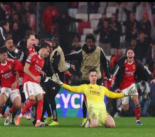 半个赛季的努力,本菲卡一方面在联赛中努力追赶波尔图,一方面在欧冠赛场上争取创造奇迹:在前7场比赛磕磕绊绊之后,今晨面对皇马,一场酣畅淋漓的4-2,一场守门员第97分钟绝杀的精彩戏码,属于狂人导演!——这一次,他没有滑跪,他已经有些年迈。这一次,他依然和身边的教练,球员激情庆祝。